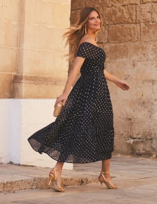 Ad Shop new-season collections at NET-A-PORTER. For glam occasions keep it sophisticated in a black midi bardot with heels and statement earrings or pair an off the shoulder maxi style with sandals for more casual events.
