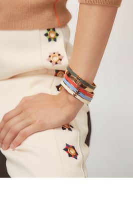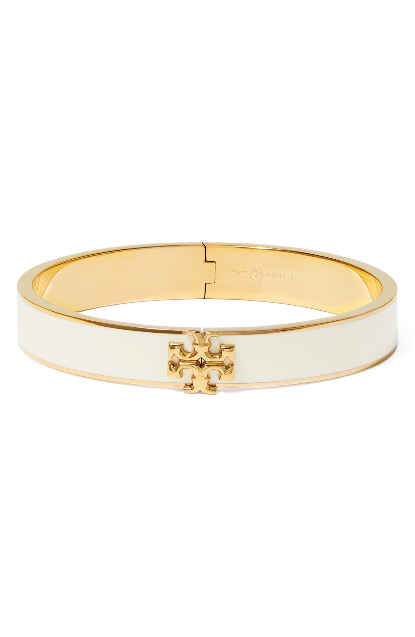 Kira enameled bracelet. Tory burch oval hinged bangle made of gold-finish brass and enamel with monogram detail. Kira Enameled Slim Bracelet. Kira Enameled Slider Bracelet.